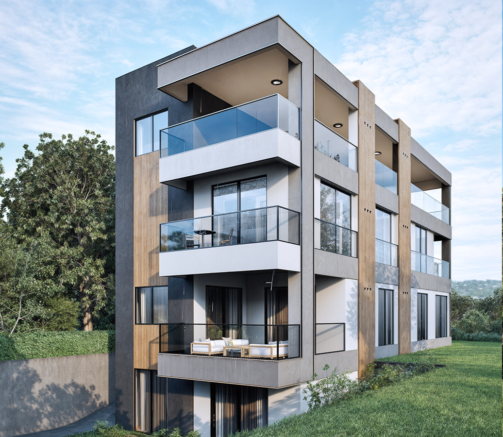 Villanın en dikkat çekici özelliği, her kata ait geniş ve katmanlı balkonlar. Cam korkuluklar, manzarayı engellemeden dairelere maksimum ışık girmesini sağlıyor. Bu balkonlar, hem özel birer teras gibi işlev görüyor hem de villanın dış cephesine hareketlilik katıyor.